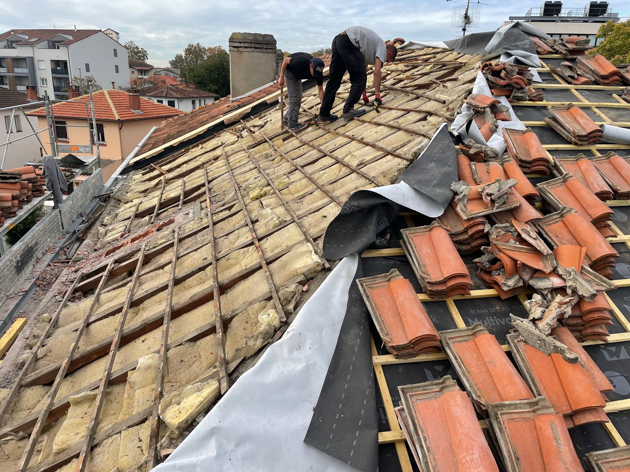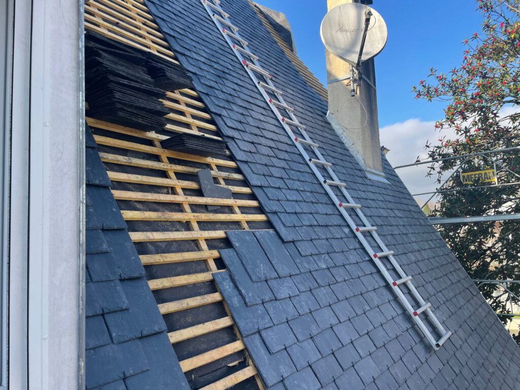 Pour les toitures plus anciennes, nous réalisons des rénovations complètes avec mise aux normes, remplacement des matériaux vétustes et amélioration de l’isolation.